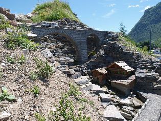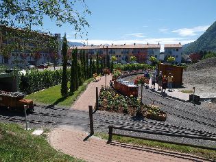 Střídají se tu měřítka budov. Model hradu je souměřitelný tak leda s LGB. Stejně tak i funkční visutá lanovka, model hamru, pily, dioráma s mostem a elektrickým motorovým vozem, elektrárna s parním strojem, apod.