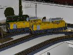 |  Na spřáhle lokomotivy můžeme vidět přidanou mosaznou destičku na háku. |  Sklopený hák lokomotivy po zadání povelu na rozpřažení. |  Model na mostě přes zamrzlý potok. |