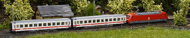 Osobní rychlíkové vozy současné epochy jsou v sortimentu LGB skutečnými obry. Hodí se skutečně jen na větší kolejiště, i když i u těchto modelů je firma věrna zásadě konstruovat modely tak, aby projely poloměr oblouku R1.