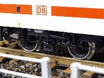 Na poloměru R1 to sice jde, ale vypadá to nad očekávání děsně. Technické provedení spodních partií modelu je ovšem z hlediska schopnosti zvládnout R1 poměrně zajímavé. Nástupní schůdky mají sklopný poslední stupeň (jako ve skutečnosti), ale celé schůdky se mohou vyklopit, či spíše vysunout ven. Vysouvání zajišťuje tlakem do boku třmenové spřáhlo. Součásti jsou poměrně jemné, jsou však vyrobeny z houževnaté pružné hmoty, která dobře klouže. Třmenová spřáhla jsou z těchto důvodu více vysunutá mimo půdorysné čelo vozu, takže mezera mezi stejnými vozy je nehezky velká. Podvozková konzola, která nese vlastní standardní třmenové spřáhlo, je provedena tak, že je možno jednoduchým způsobem spřáhlo posouvat v podélném směru a měnit tak vzdálenost temene oblouku třmenu od čela vagonu. Pokud uznáme poloměr R3 jako nejmenší, lze docílit zasunutím spřáhla opticky mnohem lepšího vjemu. Spřáhla je nutno posunout maximálně tak, aby v zatáčce nedošlo ke konfliktu nárazníků.