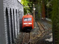 ![]() | ![]() | ![]() I na úzkorozchodném nástupišti nevypadá normálněrozchodná lokomotiva nějak extra nepatřičně. |
