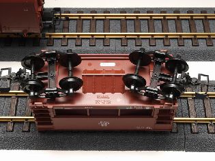 Kruh sestavíme bez problémů, ale pokud přiložíme koleje na sebe zjistíme rozdíly. V tom jsou koleje LGB naprosto perfektní. Pražcová pole jsou vyrobena z kvalitního hnědého probarveného plastu. Pražce jsou poněkud hranatější, ale vypadají pěkně. Kombinace s jinými pražcovými poli (LGB, Thiel, Lebu) je zcela bezproblémová. Hranatější tvar přináší příjemné optické rozrůznění při kombinaci na kolejišti.