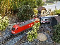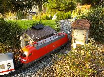 ![]() Krabice je hezká, ale graficky nijak nevyniká - srovnejme např. s designem firmy BRAWA. | ![]() Model poprvé na kolejích (jak jinak – koleje od LGB). |