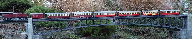 Zátěž zajistíme například štěrkem, jehož se do vysokostěnného vozu vleze celkem dost. Silnou lokomotivou je asi nejlépe LGB trojče F7A+F7B+F7A s dodatečně motorizovaným středním dílem. Vysoký výkon mají také Aristo šestinápravové čtyřmotorové stroje E8, které lze spřáhnout do úhledné dvojice.
