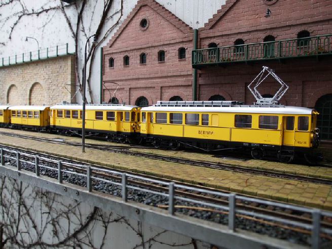 Připomeňme si, že elektrická dráha byla zprovozněna v roce 1908, vede ze St. moritz do italského Tirana, přičemž adhezně překonává průsmyk pod štítem Bernina ve výšce 2300 m n/m. Dráha má stejnosměrné napájení, původní motorové čtyřnápravové vozy tramvajové konstrukce jsou po rekonstrukcích a modernizacích dodnes k vidění.