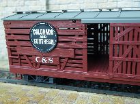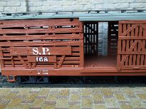 Druhá varianta dobytčího vozu se liší jiným odstínem hnědé barvy a jiným popisem. Tentokrá jde o vůz společnosti Southern Pacific.