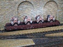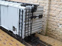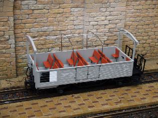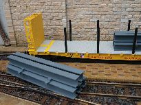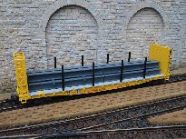 Plošinový vůz s čely zpevněnými příhradovou konstrukcí mají náklad ocelových nosníků, který s objevil i na nových klanicových vozech původem z RhB. Nosníky jsou jako náklad volně položeny a mohou být nahrazeny jiným materiálem.
