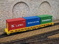 Plošinové vozy se sklopnou »půlávkou« na každém čele a nízkými vyjímatelnými bočnicemi jsou typické nejen pro přepravu kontejnerů, ale i aut. Pokud kontejnery sejme, auta mohou přejíždět po sklopených lávkách z vagonu na vagon.
