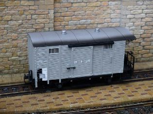 Nákladní dvounápravový zavřený vůz s brzdařskou plošinou ztvárňuje původní šedé vozy BB. K jeho výrobě byly využity, tak jako u předchozích modelů, existující výlisky. Zamřížovaná větrací okénka tedy neodpovídají zcela předloze, ale iluze původního nákladního vozu je i tak poměrně dokonalá. I u tohoto vozu jsou osazena plná kola, jako by výrobce v okamžiku kompletace souprav pro expedici hvězdicová kola neměl na skladě.